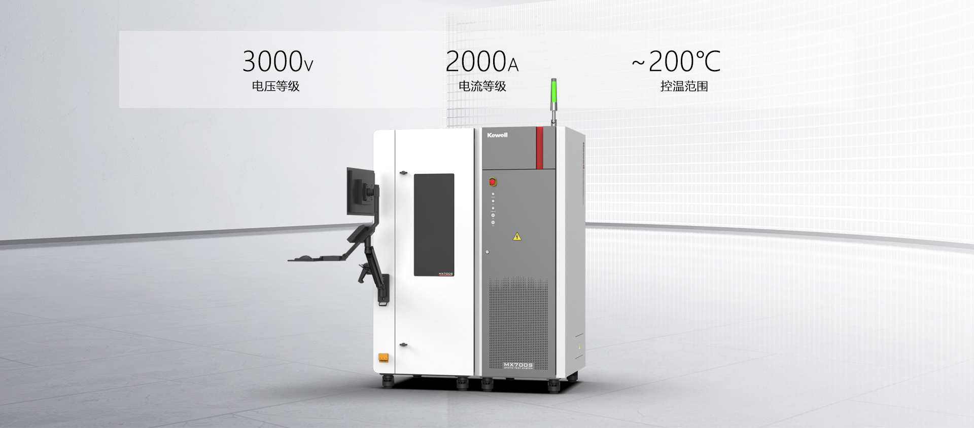 MX300A系列自动化测试产线由上料机、绝缘测试、预热、高温静态测试、高温动态测试、冷却及NG下料、常温动态测试、常温静态测试、拱度、全尺寸、NG下料、下料机等模块组成,采用公司自主研发的测试系统与自动化相结合,为IGBT自动化产线测试提供一个精准、稳定的测试平台,用于产线全方面检验IGBT的参数特性。