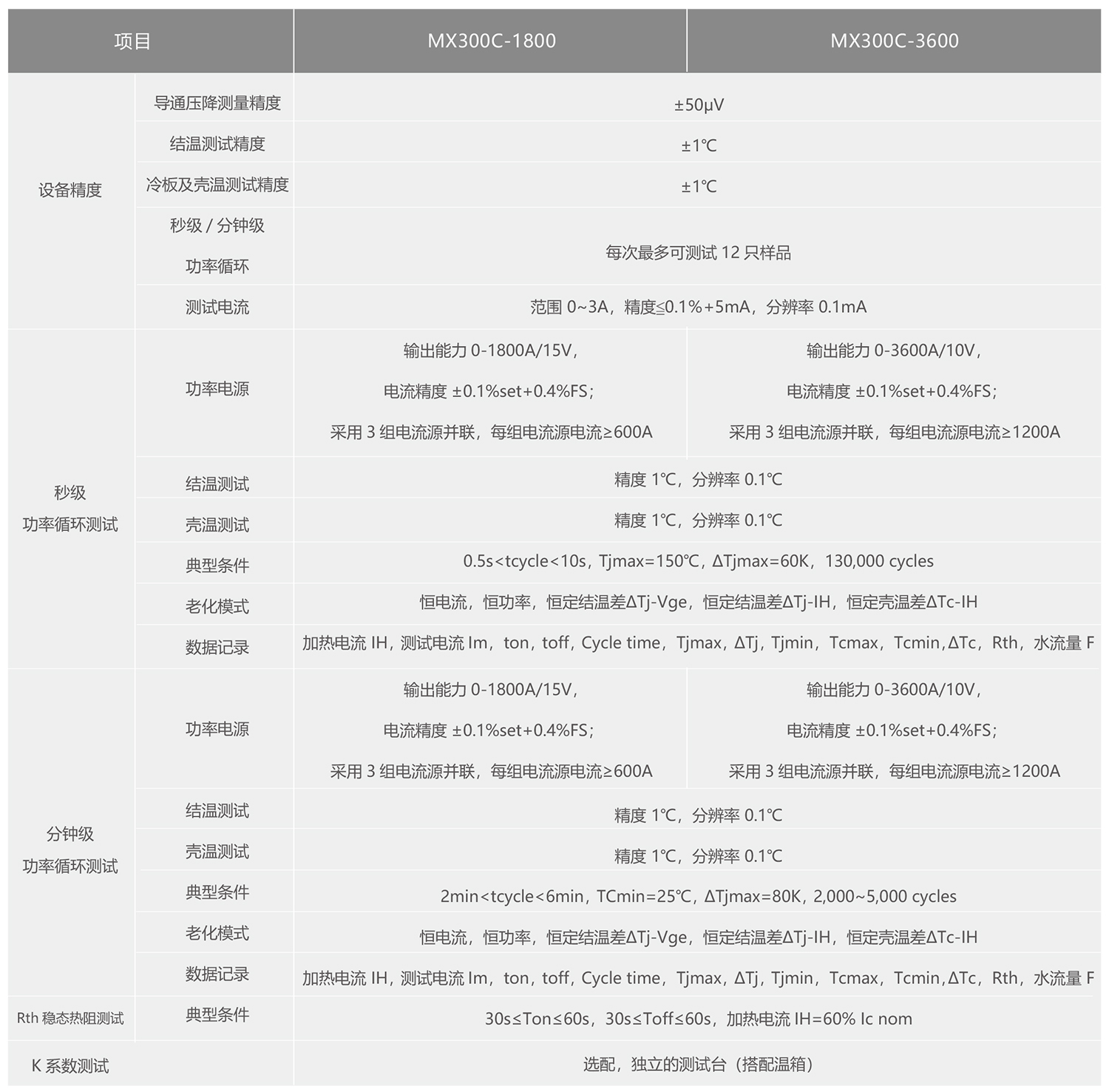 MX300C 系列功率器件热特性测试系统是一款自动热特性测试设备,由数采单元、温控单元、电源以及控制单元等组成。用于主要用于IGBT、SiC 等功率器件的功率循环和热特性测试,以模拟和测量器件寿命期内的表现。