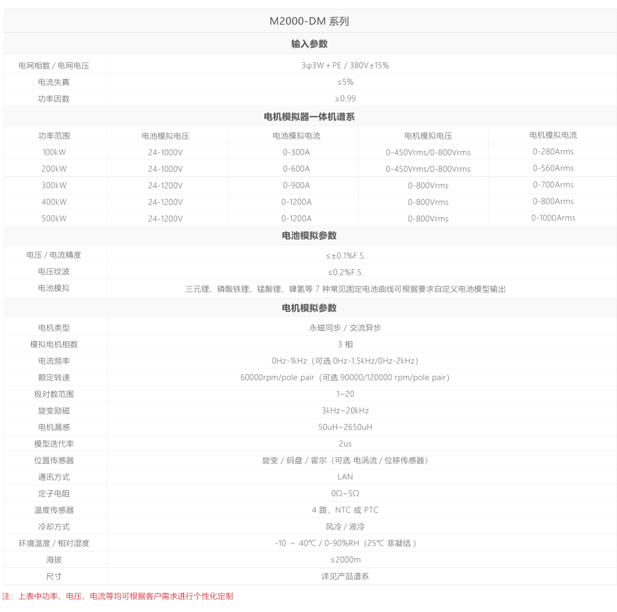 M2000-DM系列一体机是一款集高效率、高精度、高动态性于一体的智能化电池及电机模拟装置,实现超高功率密度,大幅降低产品体积和重量。电池及电机模拟单元共母线设计,系统配置无传统台架,且测试过程能量内循环,克服了传统台架测试系统灵活性差、系统复杂、安全风险高、机械振动强、噪声大等缺点,可满足不同规格驱动电机控制器快速下线测试需求。