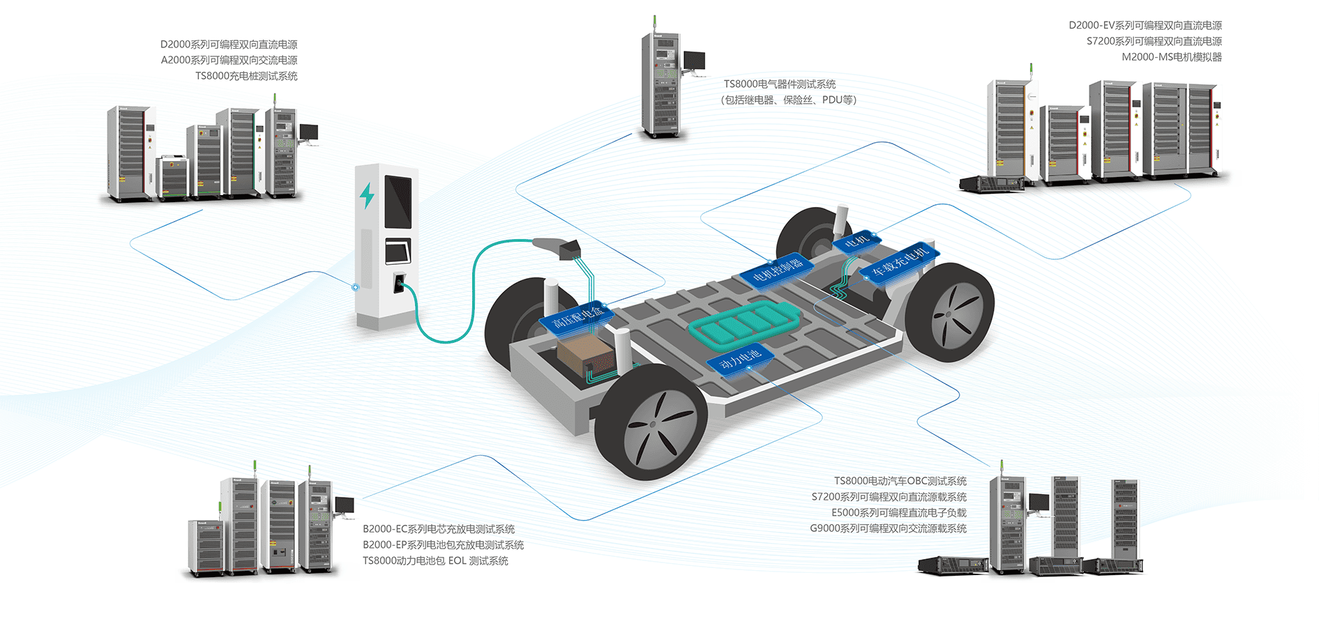 太阳成tyc33455ccwww电动汽车OBC测试系统是一款针对车载式或固定式充电器和DC/DC变换器的测试系统平台,以国标为测试依据,采用自主开发的测试系统软件实现对车载充电机OBC&DC/DC的电性能、保护功能、精度、通讯、以及定制化功能的测试。