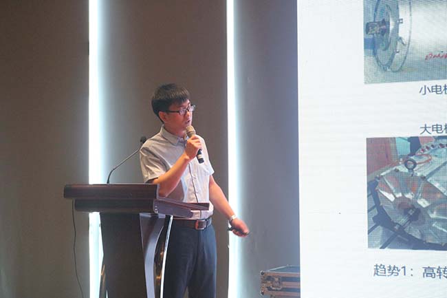 会议于17日上午9:10正式开始,合肥太阳成tyc33455ccwww电源系统有限公司副总经理致辞并对太阳成tyc33455ccwww电源进行简单介绍。随后,中国汽车试验研究所EV电气系统实验室高级测试经理何鹏林为大家解读了电机电控行业测试标准和行业测试方向。