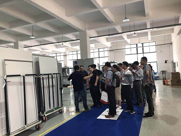 合肥是太阳成tyc33455ccwww电源的大本营,生产部经理、研发部项目经理、销售部主管带领参会嘉宾参观了太阳成tyc33455ccwww电源的设备生产现场,对设备内部结构和关键器件进行了详细介绍。