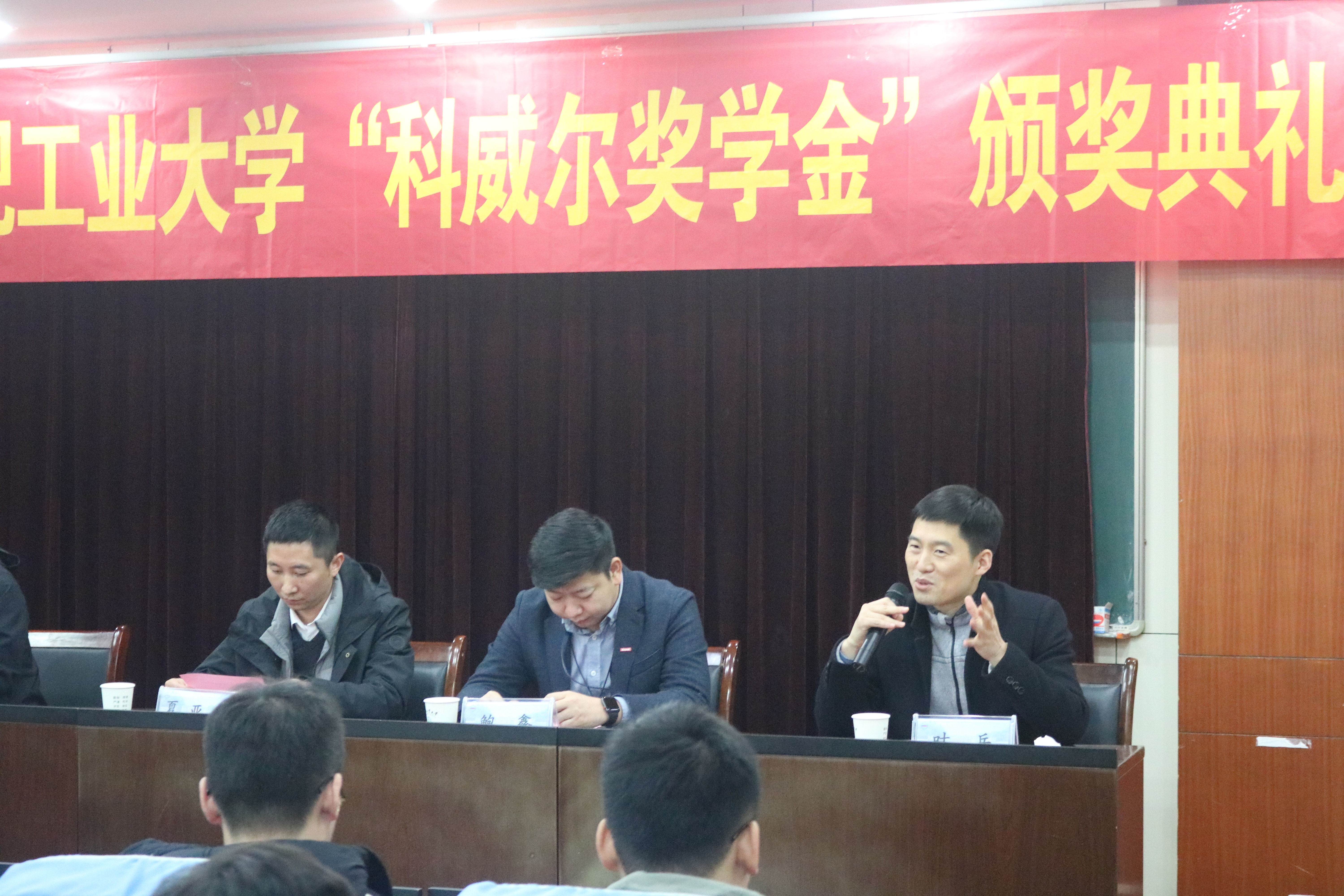 最后,由合肥工业大学汽车工程研究院副院长贺林宣读2019学年“太阳成tyc33455ccwww奖学金”获奖学生名单,同学们依次上前接受奖学金证书与奖牌,并与颁奖嘉宾、老师合影留念。获奖学生代表在发言中向太阳成tyc33455ccwww电源表达了感激之情,同时也表示将把获得的奖励化为学习成长道路上的动力,争取用实际行动回报学校和社会。