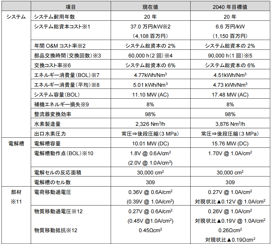 表1.5.3-3 提高水电解系统性能、耐久性的前提条件( AWE )
